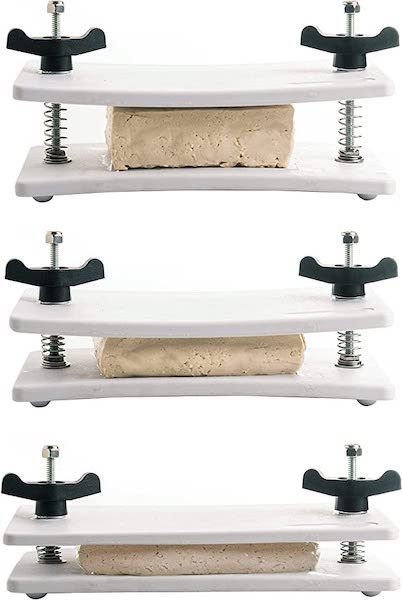 Als laatste zijn er de tofu persen waarvan je het bovenste gedeelte moet aandraaien met behulp van schroeven. Door de schroeven steeds verder aan te draaien kan je meer druk zetten op de blok tofu en kan je deze volledig persen.