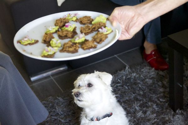 Die crackers zijn op zich al super lekker, maar met een schepje auberginekaviaar of guacamole is er helemaal geen houden meer aan. Populair spul en een goeie start! En Snoops…die vond de hapjes schijnbaar ook wel interessant 😉