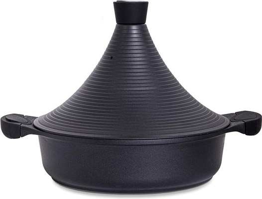 Deze tajine ziet er niet uit zoals een traditionele. De bovenkan is wel van aardewerk, maar de onderkant is van roestvrij staal. Dat het maakt het dan wel weer geschikt voor als je een inductievuur hebt. De handvaten eraan kunnen handig zijn als je je gerecht graag op tafel presenteert.